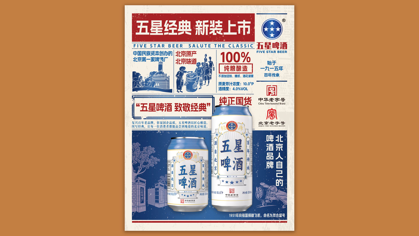 Sonhoshin & Five Star Beer tiene sus raíces en la fábrica de gaseosas Beijing Sonhoshin Soda Factory en Pekín, fundada en 1915 y primera cervecera del país financiada exclusivamente con capital chino. Esta empresa muestra claramente cómo puede ser un siglo de desarrollo cervecero. En febrero de 2024, fue distinguida por el Ministerio de Comercio como “Marca consagrada de China”, un testimonio de la rica historia de la marca y de su continuo impulso.