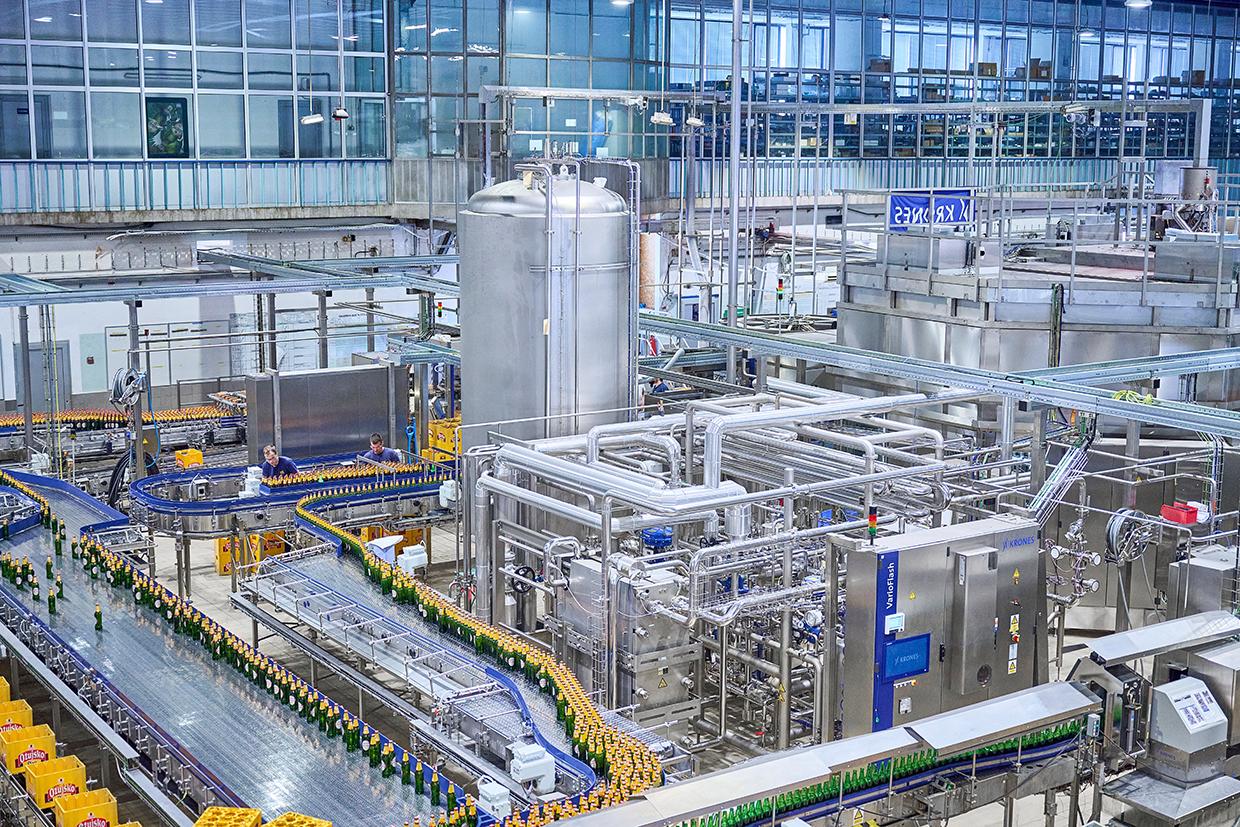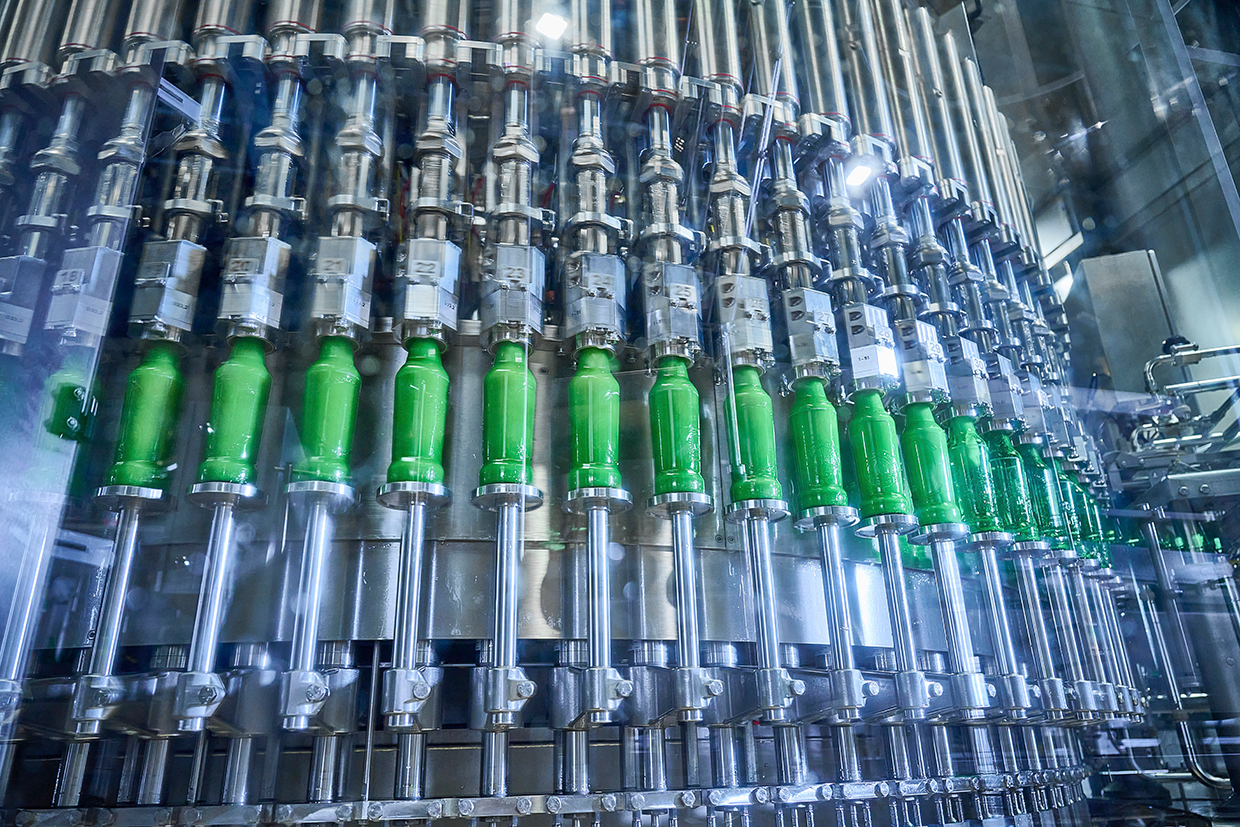 Pero en cada instalación de máquinas nuevas la cervecería siempre se enfrenta al mismo reto: debido a que muchos de los edificios existen desde hace varias décadas, no es posible ampliar las instalaciones por motivos de espacio y también por motivos relacionados con la protección del patrimonio histórico. La nave de embotellado, por ejemplo, se encuentra en un edificio de tres pisos, y cada metro cuadrado es aprovechado convenientemente: cuatro líneas trabajan en paralelo las 24 horas del día, durante cinco a seis días a la semana, dependiendo de la temporada. Y todas son de Krones.